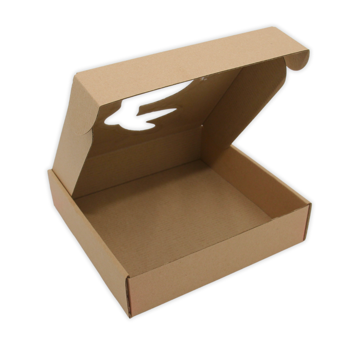 Wykonany z wytrzymałej tektury trójwarstwowej, mikrofali E o gramaturze 380g/m², w kolorze brązowym.