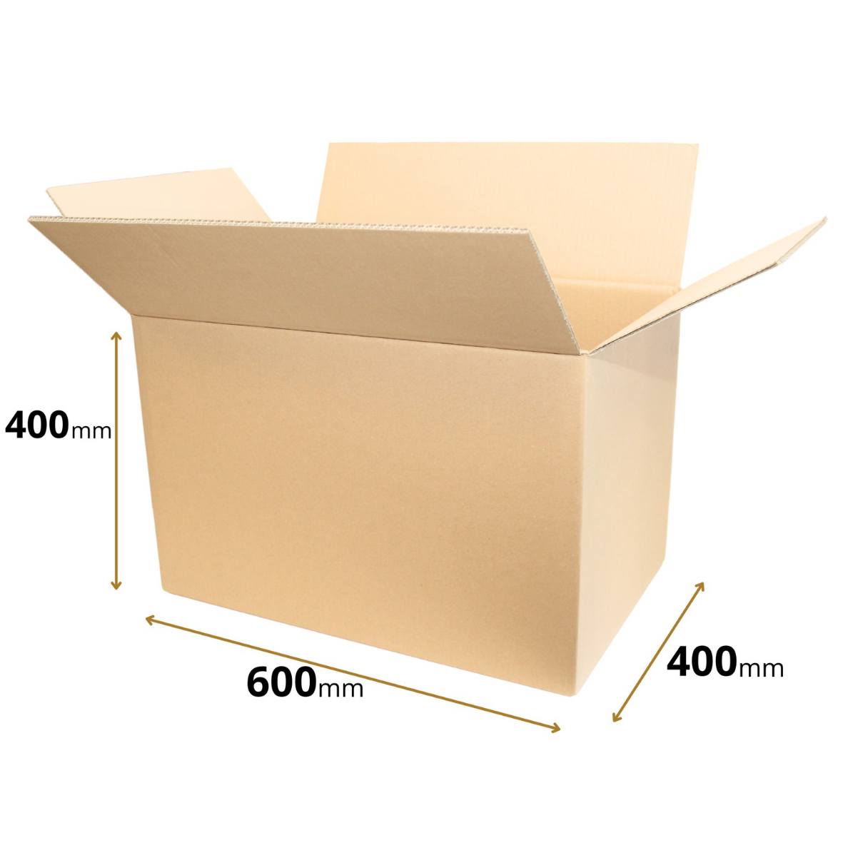 Brązowe pudełko klapowe o wymiarach wewnętrznych 600x400x400 mm.