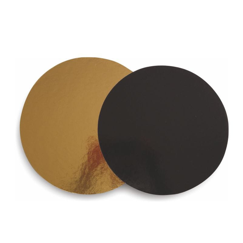 Podkład złoto-czarny krążek wykonany jest z tektury 2400g/m2 i pokryty powłoką tłuszczo odporną. Produkt jest obustronnie laminowany o gładkich brzegach. Zaleca się stosowanie podkładu o większej średnicy niż podstawa tortu.