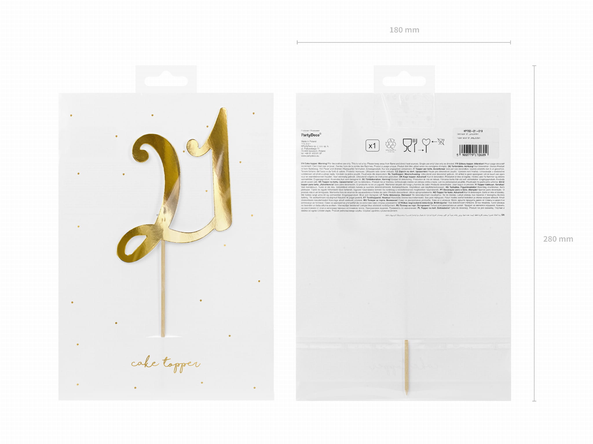 Wykonany z papieru lustrzanego w kolorze złotym.